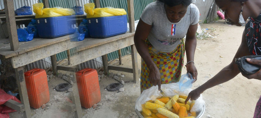 A la braise ou préparé, les épis de maïs se vendent comme de petits pains.